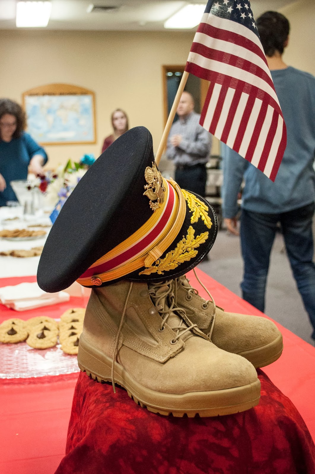 After the performance many enjoyed light refreshments that were provided by members of Messiah Lutheran Church’s group, the “OWLS” and served on a patriotic, Veteran’s Day themed table scape which featuring soldier memorabilia, flowers and service flags.